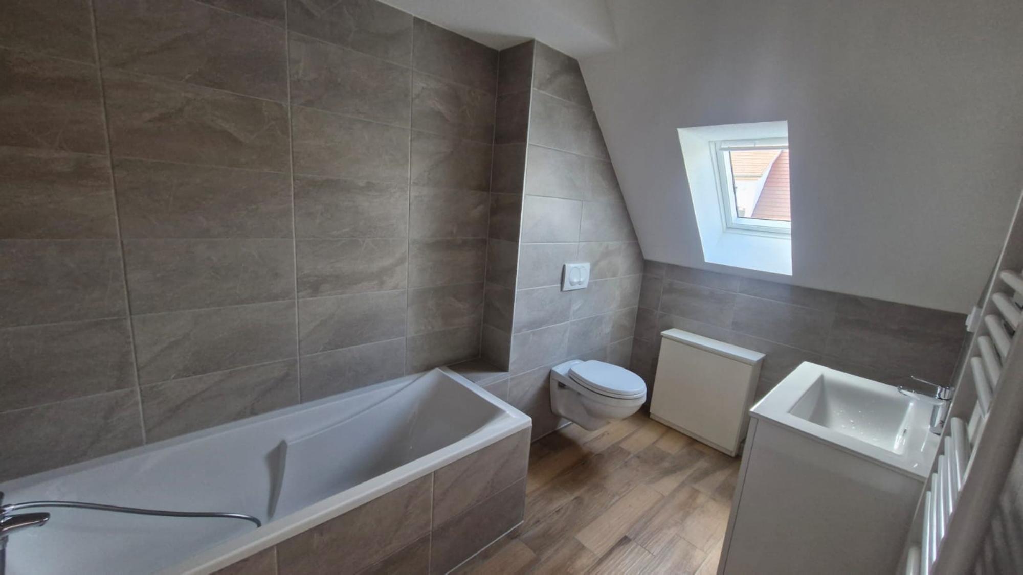 • Salle de bain équipée avec meuble vasque